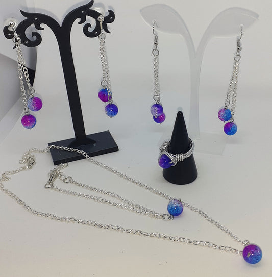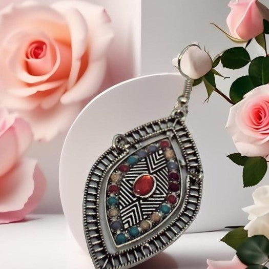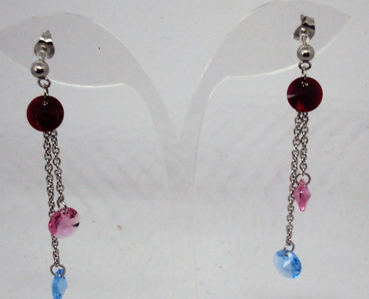Ambre Boucle d'oreille argentée et cristaux de couleur