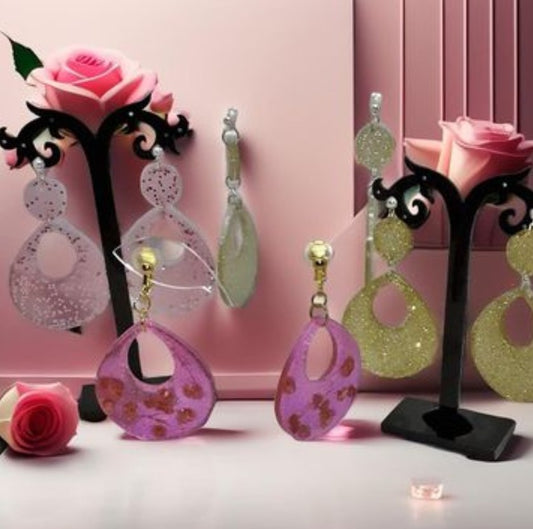 Ines Boucle d'oreille pièce unique forme géométrique en résine fait main